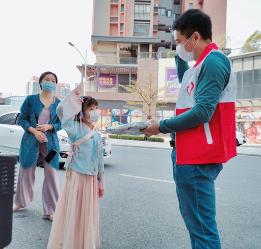 在禪城區(qū)瀧景花園門口,駱立先將郵件按樓棟號排好順序,以便迅速查找,然后逐一打電話通知客戶取件。三月的嶺南已是繁花似錦、春風(fēng)拂面,不一會兒,他的頭上就滲出了細(xì)密的汗珠。收到教材,一位身穿漢服的小學(xué)生為表達感謝,向駱立敬了一個少先隊禮。駱立說這一舉動真是暖化了自己的心,再累也值得!