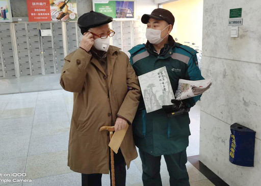 北京市西城區(qū)西外大街郵政支局投遞員侯毅來(lái)自湖北,疫情防控期間,無(wú)法回家的他把對(duì)家鄉(xiāng)的擔(dān)心和牽掛化為對(duì)段道內(nèi)百姓的貼心服務(wù)。面對(duì)激增的郵件,侯毅主動(dòng)承擔(dān)了兩個(gè)投遞道段的工作,每天從早上7點(diǎn)開始,一直忙到深夜。對(duì)于年齡較大的老年人更是特別關(guān)心,悉心了解他們的需求。圖為侯毅服務(wù)社區(qū)的一位老人?!蹰Z迪 呂薇 攝影報(bào)道