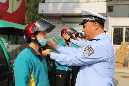 5月15日,山西省陽泉市交警二大隊(duì)聯(lián)合山西省陽泉市郵政分公司共同開展 “警企合作共建文明交通,‘一盔一帶’守護(hù)安全出行 ”勸導(dǎo)快遞騎手佩戴安全頭盔活動。該大隊(duì)長賈勇慧將10個安全頭盔贈給該分公司投遞人員,倡導(dǎo)投遞員駕車系好安全帶,駕乘摩托車、電動車戴好安全頭盔等,做到安全駕駛、生命第一。 □劉靜雅 攝影報(bào)道