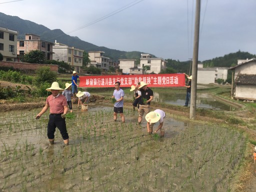 正是插秧時(shí)節(jié),郵儲銀行江西省遂川縣支行黨支部駐村干部在走訪過程中,得知新寨村68歲無兒無女的建檔立卡貧困戶謝昌校因身體不適無法及時(shí)插秧的情況后,立即向單位黨支部書記進(jìn)行了匯報(bào)。5月19日,遂川縣支行黨支部組織黨員干部一行10余人來到謝昌校家的農(nóng)田,開展“助貧插秧”主題黨日活動,幫助貧困群眾解決實(shí)際困難,讓田間地頭成為黨員教育的生動課堂。 □焦溱溱 羅斌 龍星 攝影報(bào)道