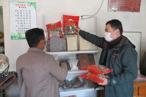 王琪瓏(右)幫助福祿村村民展示當(dāng)?shù)靥厣r(nóng)產(chǎn)品。