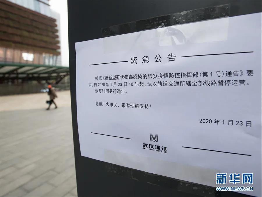 昨日,武漢市疫情防控指揮部決定,全市城市公交、地鐵、輪渡、長(zhǎng)途客運(yùn)暫停運(yùn)營(yíng);無特殊原因,市民不要離開武漢,機(jī)場(chǎng)、火車站離漢通道暫時(shí)關(guān)閉。恢復(fù)時(shí)間另行通告。