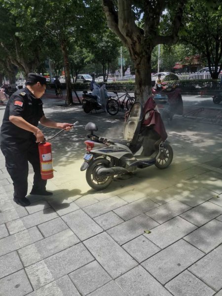 當天中午12:20分,網(wǎng)點正在準備例行消毒,張師傅對網(wǎng)點及周邊環(huán)境進行日常巡查,第一時間發(fā)現(xiàn)了自燃的電動車,并迅速拿出了滅火器上前滅火。“外面的電動車很多,停放的又比較密集,不滅掉等下會燒到其他車子。”張?zhí)m洲在保安的崗位上工作了十多年,“郵儲銀行襄陽市分行營業(yè)部經(jīng)常進行消防安全培訓,而且每月進行演練,知道怎么滅火,這點事情沒什么怕的。”