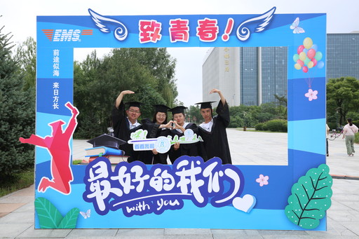 7月12日,內(nèi)蒙古郵政分公司與內(nèi)蒙古財(cái)經(jīng)大學(xué)首次合作,在校園內(nèi)為畢業(yè)生量身打造了畢業(yè)郵局,設(shè)計(jì)展出了獨(dú)具內(nèi)蒙古特色的“青春不散場(chǎng)”藍(lán)色蒙古包相框、充滿青春活力的“致青春·最好的我們”抖音版式相框。穿著學(xué)士服的畢業(yè)生流連其間,紛紛攝影打卡留念,保存一份美好的青春回憶。圖為畢業(yè)生在“致青春·最好的我們”的相框中合影。 □記者 王圓圓 通訊員 陳婧 攝影報(bào)道