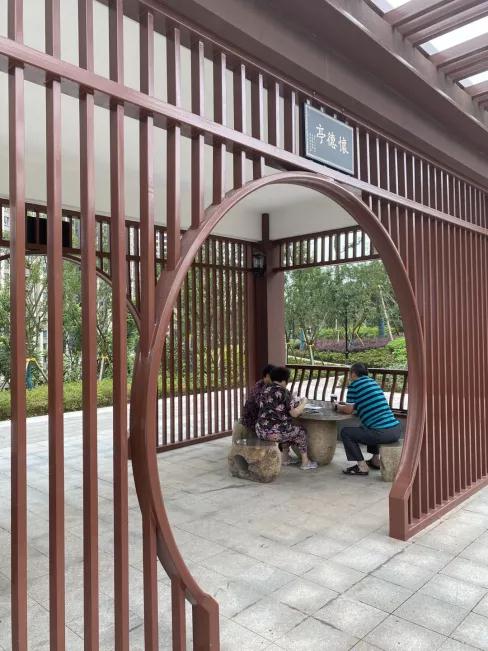 吃過早飯,記者來到位于兩江新區(qū)的禮仁公園。公園里栽種著錯(cuò)落有致的樹木和草坪,形成了漂亮的立體景觀,休閑亭臺(tái)、健身設(shè)施、多功能步道坐落其間,已經(jīng)聚集了不少三五成群的居民在散步休閑。