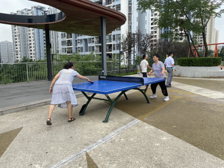 大水井體育文化公園內(nèi),附近居民正在打乒乓球。(求是記者陳金霞攝)