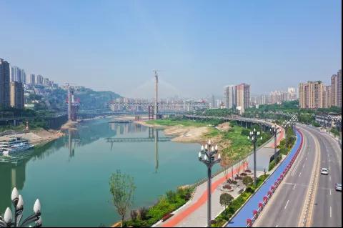 美麗的濱江步道沿著嘉陵江向遠(yuǎn)處延展。(重慶市委宣傳部供圖)
