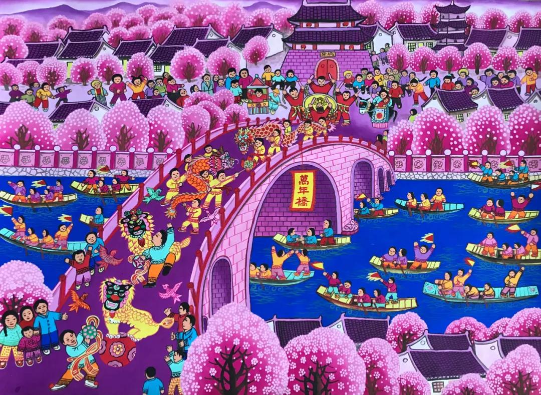 “農(nóng)民畫(huà)的靈感來(lái)自農(nóng)村生活,傳統(tǒng)農(nóng)民畫(huà)多以豐收為主題,飽含著農(nóng)民對(duì)吃飽飯的渴望;近年來(lái),畫(huà)作題材不斷豐富、內(nèi)容更加多元,不僅表現(xiàn)了對(duì)未來(lái)生活的向往,更是對(duì)當(dāng)下幸福生活的深情寫(xiě)照,”青州農(nóng)民畫(huà)院院長(zhǎng)宋曉表示,農(nóng)民畫(huà)的發(fā)展史,正是中國(guó)農(nóng)村發(fā)展變化的生動(dòng)縮影。