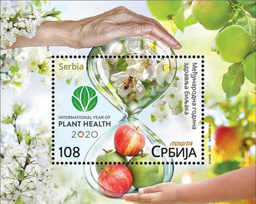 為提高大眾和政策制定者對植物健康重要性的認識,以實現(xiàn)可持續(xù)發(fā)展目標,2020年定為“國際植物健康年”。在第二季度中,不少國家都發(fā)行了“國際植物健康年”郵票,如吉爾吉斯斯坦郵政和塞爾維亞郵政分別于4月4日和4月22日發(fā)行;韓國郵政的郵票圖案為因健康植物而美好的自然環(huán)境,整張內含郵票16枚,邊紙圖案為植物莖葉;拉脫維亞郵政的郵票以開花的植物與拉脫維亞文版IYPH標志為圖案,整張內含郵票10枚,上下各5枚對倒印制。