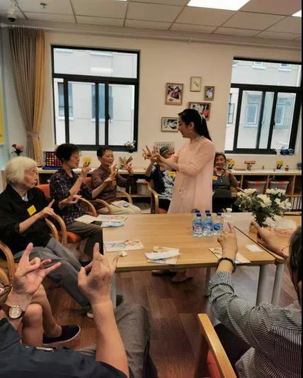 “蘭花指,蘭花掌,蘭花拳。好,加大難度,一個(gè)手蘭花指,一個(gè)手蘭花掌……”在知樂(lè)認(rèn)知癥家庭支持中心,昆曲閨門(mén)旦演員趙津羽正在向認(rèn)知障礙癥老人指導(dǎo)簡(jiǎn)單的手指動(dòng)作。