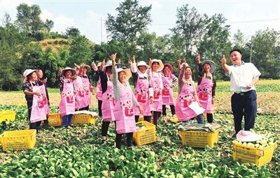 張武和菜農(nóng)們一起,在菜地里上演一場時尚大氣的圍裙秀。□黃倩 攝