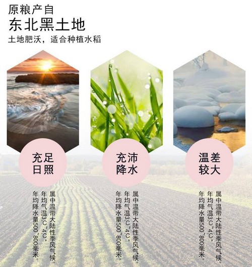 長白山源頭水灌溉,是世界三大最優(yōu)質(zhì)礦泉水源地之一。而地處北緯41-46°吉林擁有肥沃的黑土地,是世界唯一“黃金水稻生產(chǎn)帶”。日照充足、水源優(yōu)質(zhì)、肥沃黑土、氣侯適宜孕育出中國最為優(yōu)質(zhì)的吉林大米,從此走向世界。