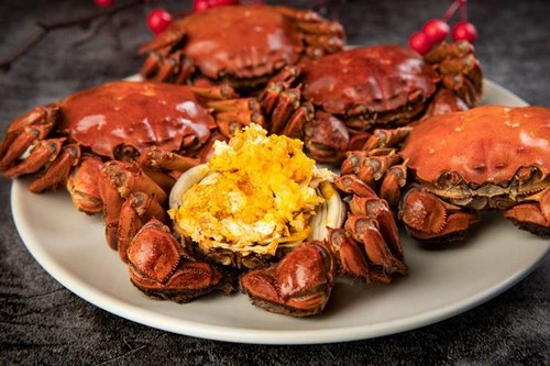 陽澄湖大閘蟹是江蘇省蘇州市特產(chǎn),更是中國國家地理標(biāo)志產(chǎn)品。 陽澄湖大閘蟹又名金爪蟹。產(chǎn)于蘇州陽澄湖。蟹身不沾泥,俗稱清水大閘蟹,體大膘肥,青殼白肚,金爪黃毛,肉質(zhì)膏膩。農(nóng)歷9月的雌蟹、10月的雄蟹,性腺發(fā)育最佳。煮熟凝結(jié),雌者成金黃色,雄者如白玉狀,滋味鮮美。