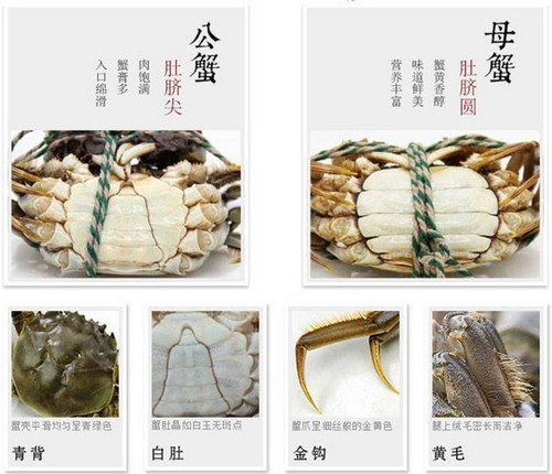 陽澄湖大閘蟹青背、白肚、金爪、黃毛,個體強(qiáng)壯厚實(shí),煮后呈亮橘紅色,口味鮮甜。陽澄湖大閘蟹形成的與眾不同的四大特點(diǎn):一是青背,陽澄湖蟹殼成青灰色,平滑而有光澤;二是白肚,貼泥的臍腹,晶瑩潔白;三是黃毛,腳毛長黃挺拔;四是金爪,陽澄湖蟹爪金黃堅挺有力,放在玻璃上能八足挺立,雙螯騰空。
