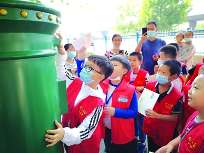 了解了郵票的功能和歷史,小記者們還接到了設(shè)計(jì)一枚郵票、寄出一封信件的任務(wù)。有了前面的知識(shí)打底,大家很快就設(shè)計(jì)出了要素齊全的郵票。設(shè)計(jì)好的作品寄給誰(shuí)呢?小記者們有的選擇寄給自己,有的選擇相互投遞。在郵政大樓外投下信件后,青奧村小學(xué)林安琦說(shuō):“這可是我寫(xiě)的第一封信呢。今天不僅了解了郵票的故事,還學(xué)習(xí)了怎么寫(xiě)信,收獲真不小。”