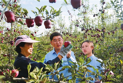 中秋時節(jié),郵儲銀行甘肅省天水市分行信貸員走進(jìn)天水市麥積區(qū)農(nóng)業(yè)產(chǎn)業(yè)化重點龍頭企業(yè)潘引軍合作社,實地了解郵儲銀行信貸支持合作社蘋果種植情況。合作社社員隨手從掛滿果實的樹枝上摘下一個沉甸甸的蘋果,遞給信貸員看。信貸員望著眼前帶著果香的大蘋果,脫口而出:“今年這蘋果,真棒!”