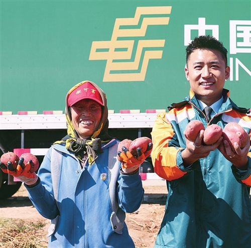 9月20日,內(nèi)蒙古自治區(qū)郵政分公司、烏蘭察布市郵政分公司、察右后旗郵政分公司三級(jí)郵政合力,與察右后旗政府?dāng)y手舉辦“農(nóng)民豐收節(jié)”暨郵政919豐收歡樂(lè)購(gòu)100萬(wàn)斤“后旗紅”土豆發(fā)貨儀式。這是郵政與察右后旗政府連續(xù)合作開展此項(xiàng)活動(dòng)的第三年,“后旗紅”土豆銷售量從2018年的12萬(wàn)斤、2019年的52萬(wàn)斤,到今年有望突破100萬(wàn)斤。以“919電商節(jié)”和“農(nóng)民豐收節(jié)”為契機(jī),借助郵政電商平臺(tái)和物流渠道,“土疙瘩”搖身一變,成了當(dāng)?shù)乩习傩彰撠氈赂坏摹敖鸶泶瘛薄?nbsp;