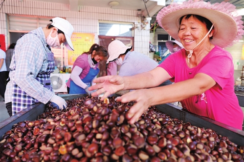 在每個板栗收購站,除了忙碌的栗農(nóng),還有郵政企業(yè)和郵儲銀行的員工,他們通過上門駐點,開展延伸服務(wù)。銀行員工手拿PAD,為收購商、外地來的采購商、前來賣板栗的栗農(nóng)現(xiàn)場開立銀行卡,加辦手機銀行,做好資金結(jié)算服務(wù)。郵政企業(yè)安排專人協(xié)助做好電商銷售和板栗裝箱、貼條、郵寄等工作,一輛輛綠郵車,將一箱箱泰山板栗送出了大山,銷往全國各地。