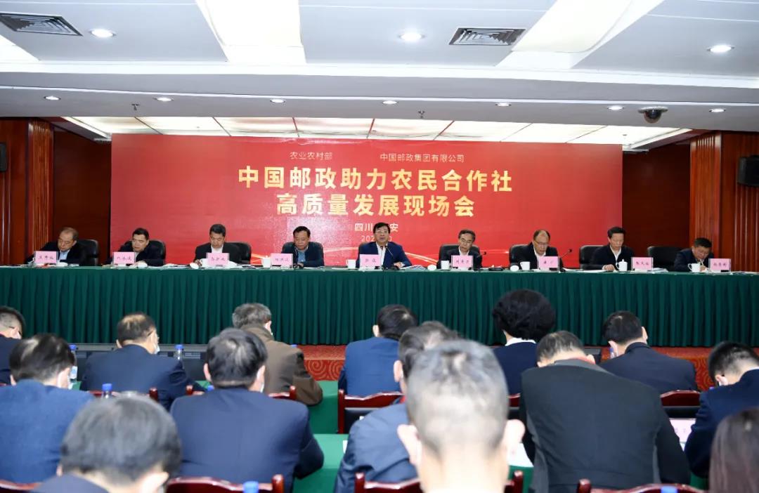 10月18日至19日,農(nóng)業(yè)農(nóng)村部和中國(guó)郵政集團(tuán)有限公司在四川雅安聯(lián)合舉辦“中國(guó)郵政助力農(nóng)民合作社高質(zhì)量發(fā)展交流活動(dòng)”。該活動(dòng)旨在進(jìn)一步總結(jié)政企聯(lián)合支持農(nóng)民合作社高質(zhì)量發(fā)展的主要做法,交流彼此優(yōu)秀經(jīng)驗(yàn),明確下階段重點(diǎn)工作。四川省人民政府副省長(zhǎng)、省委農(nóng)村工作領(lǐng)導(dǎo)小組副組長(zhǎng)楊洪波在活動(dòng)上致辭,中央農(nóng)村工作領(lǐng)導(dǎo)小組辦公室副主任、農(nóng)業(yè)農(nóng)村部黨組副書記、副部長(zhǎng)韓俊,中國(guó)郵政集團(tuán)有限公司黨組書記、董事長(zhǎng)劉愛力出席活動(dòng)并講話。中國(guó)郵政集團(tuán)有限公司副總經(jīng)理康寧,中國(guó)郵政集團(tuán)有限公司副總經(jīng)理、中國(guó)郵政儲(chǔ)蓄銀行股份有限公司行長(zhǎng)郭新雙出席活動(dòng)。