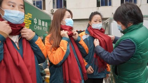 投遞員們?cè)谝痪€“沖鋒陷陣”,后方的保障工作也及時(shí)跟進(jìn)。為了幫大家出班時(shí)抵御風(fēng)寒,今天一大早,朝陽(yáng)郵政工會(huì)就把2500條圍巾送到了投遞員的手中。“這圍巾厚實(shí),天再冷也覺(jué)得特別溫暖,所有的辛苦都是值得的,我們會(huì)送好每一件包裹、每一份報(bào)刊,讓廣大市民和用戶都滿意。”“羊絨圍巾既柔軟又保暖,冬天出班再也不用擔(dān)心會(huì)冷了。”大家說(shuō)笑著一個(gè)個(gè)戴好了圍巾。據(jù)了解,朝陽(yáng)郵政工會(huì)已制定了一系列的送溫暖計(jì)劃,讓投遞員們?cè)诰o張的工作之余有熱水喝、有熱飯吃、有地方休息,全力解決他們的后顧之憂。
