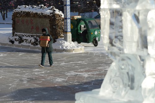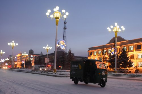 內(nèi)蒙古自治區(qū)興安盟阿爾山市的冬天寒氣逼人,近日的最高氣溫約為零下30攝氏度。49歲的韓金花一早就穿戴好防寒衣物,冒著嚴(yán)寒騎著三輪車出門投遞、攬件。韓金花是阿爾山市郵政分公司寄遞事業(yè)部投遞員,她從事郵遞工作已有10多年。