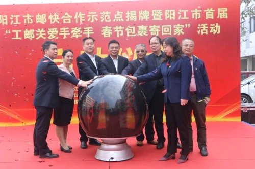 1月27日,陽江市首個(gè)“郵快合作”示范點(diǎn)在廣東廣青金屬科技有限公司正式揭牌成立,有效解決該企業(yè)4000多名員工收寄快遞難題。活動(dòng)當(dāng)天,陽江市總工會(huì)也正式啟動(dòng)該市首屆“工郵關(guān)愛手牽手,春節(jié)包裹寄回家”活動(dòng),為企業(yè)異地務(wù)工人員給遠(yuǎn)在家鄉(xiāng)的親人寄去一份心意和關(guān)愛,提高他們留在陽江過年的幸福感和獲得感。
