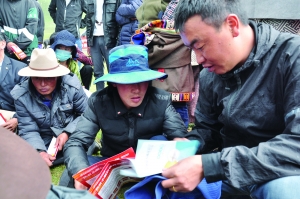 扎西鬧吾(右一)為牧戶(hù)宣講金融政策