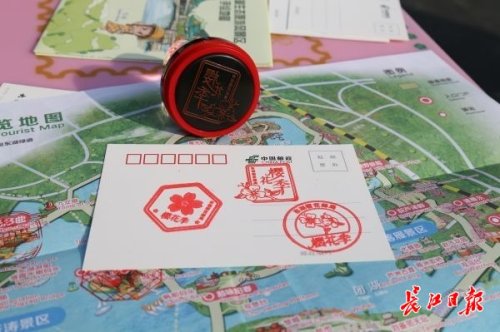 另外,櫻花郵局專門(mén)打造了東湖風(fēng)景紀(jì)念戳、賞櫻地標(biāo)戳等18款專屬紀(jì)念戳。賞櫻期間,游客可在櫻花郵局領(lǐng)取一張手繪地圖,集齊5處指定地標(biāo)的紀(jì)念戳,即可領(lǐng)取一份專屬櫻花禮品。