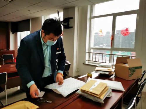 按照分工,柴閃閃負(fù)責(zé)代表團(tuán)內(nèi)的服務(wù)工作,陳蘭穎負(fù)責(zé)和代表團(tuán)以及駐地溝通,在符合代表團(tuán)規(guī)定和疫情防控要求的前提下提供郵政服務(wù)。3月6日中午時(shí)分,柴閃閃急匆匆地扒拉了兩口飯,就回到房間,一張張地將有需求的代表和工作人員填好的、由陳蘭穎特別制作的兩會(huì)服務(wù)單拍照回傳給她。東四郵局內(nèi),隨著手機(jī)上微信信息不斷響起,陳蘭穎帶著工作人員仔細(xì)對照服務(wù)單,給代表和工作人員分裝郵件。陳蘭穎說:“我的手機(jī)24小時(shí)開機(jī),有不清楚的問題,無論是閃閃還是其他代表可以隨時(shí)找我。”晚上7點(diǎn),經(jīng)過嚴(yán)格消毒處理的郵件被東四郵局的工作人員送到代表團(tuán)駐地,以“無接觸”的形式由工作人員領(lǐng)走。