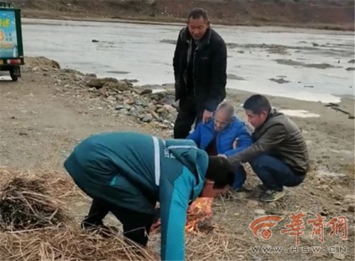 圍觀救援過程的村民們,有的拿來干凈的大棉襖,有的端來熱水,有的找來干草點燃生火……有兩個村民為老人換上衣服后,扶著他坐下來烤火,過了好一會兒老人才緩過勁兒,慢吞吞說了句“我活過來了”。
