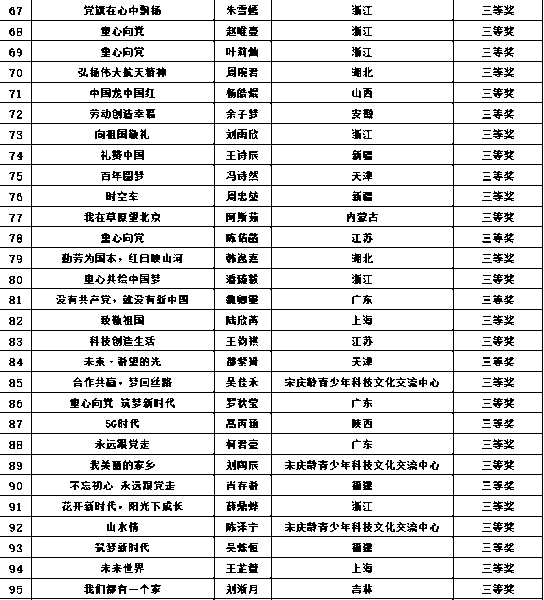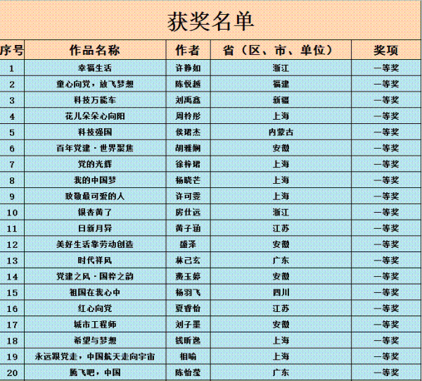 “永遠(yuǎn)跟黨走 逐夢(mèng)新時(shí)代”全國(guó)少年兒童郵票創(chuàng)作設(shè)計(jì)作品征集活動(dòng)獲獎(jiǎng)名單
