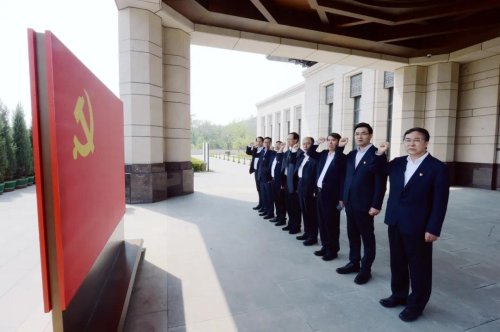 “我志愿加入中國共產黨,擁護黨的綱領,遵守黨的章程,履行黨員義務,執(zhí)行黨的決定……”在紀念館二層的“四梁八柱”敞軒,集團公司黨組全體同志在黨旗前莊嚴宣誓,重溫入黨誓詞,重憶入黨初心,堅定為黨和人民奮斗終身的理想信念。