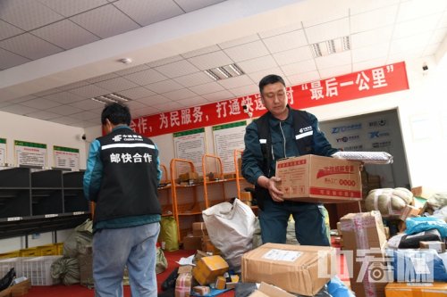 在松旺莊村級(jí)郵快合作服務(wù)點(diǎn),洙河新村黨委書(shū)記姜龍表示,自從在村里設(shè)上了郵快合作服務(wù)站以后,真是為村民取快遞帶來(lái)了極大的方便。他告訴記者,距離服務(wù)站不遠(yuǎn)就是村幼兒園,很多村民現(xiàn)在已經(jīng)形成習(xí)慣,每天下午在幼兒園接完孩子,順路就到服務(wù)站把快遞取了,真是方便。在被問(wèn)到原來(lái)取快遞的情況時(shí),姜書(shū)記說(shuō),快遞進(jìn)村之前,村民取快遞都要到七八公里之外的鎮(zhèn)上去取,如果再趕上陰天下雨、天寒地凍的非常不方便、也不安全。現(xiàn)在郵政幫我們把這個(gè)問(wèn)題解決了,真是太好了。姜書(shū)記接著說(shuō),現(xiàn)在不僅我們?nèi)〖奖悖募埠芊奖恪`]政投遞人員一天到服務(wù)站三趟,我們往外發(fā)出的批量農(nóng)副產(chǎn)品,只要一個(gè)電話,郵政工作人員當(dāng)天就過(guò)來(lái)打包寄遞發(fā)出了。