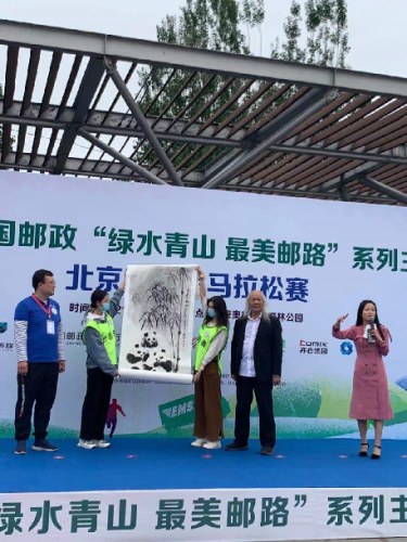 16日,2021年中國郵政“綠水青山最美郵路”系列主題賽北京站——“逐夢冬奧 相約北京”半程馬拉松賽,暨“祝福冬奧”明信片首發(fā)式在北京奧林匹克森林公園舉辦。活動現(xiàn)場,“祝福冬奧”明信片原畫作者楊竹向體育郵局捐贈畫作。