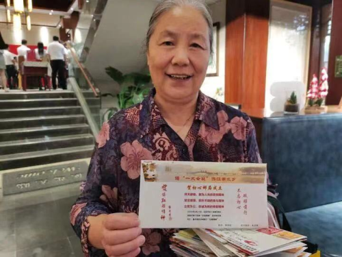 70多歲的朱賢嫣是一名集郵愛好者。南湖初心郵局成立那天,她一大早就冒雨前來,特地在她親自設(shè)計的信封上面蓋上紀(jì)念郵戳。