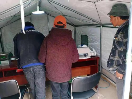 積極開展生產(chǎn)自救,保證郵政、金融服務(wù)不中斷,云南漾濞、青海瑪多兩地郵政人搭建“帳篷郵局”,滿足當(dāng)?shù)匕傩沼绵]需求。