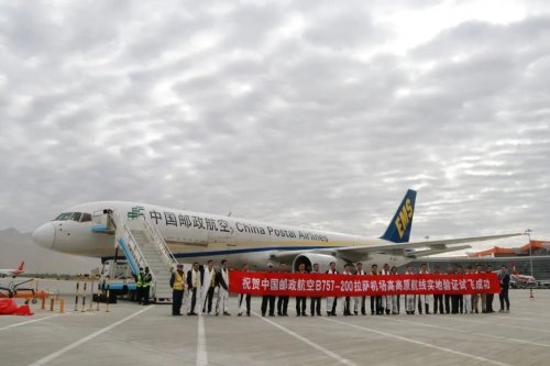 5月25日5點(diǎn)23分,一架?chē)娡恐袊?guó)郵政航空的波音757-200飛機(jī),從四川成都雙流國(guó)際機(jī)場(chǎng)起飛,7點(diǎn)17分安全飛抵西藏拉薩貢嘎國(guó)際機(jī)場(chǎng),后續(xù)按計(jì)劃順利完成在拉薩貢嘎機(jī)場(chǎng)全發(fā)起飛、進(jìn)近以及模擬單發(fā)失效復(fù)飛等計(jì)劃驗(yàn)證科目。至此,由民航北京監(jiān)督管理局組織的中國(guó)郵政航空高高原和RNP AR程序驗(yàn)證試飛取得了圓滿(mǎn)成功,在西藏和平解放70周年之際,“祝賀中國(guó)郵政航空B757-200拉薩機(jī)場(chǎng)高高原航線實(shí)地驗(yàn)證試飛成功”的橫幅,在高原上獵獵展開(kāi)。