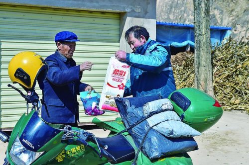 在趙滿明的摩托車上,經常會出現(xiàn)與工作“不相符”的物品,有時是衛(wèi)生紙等生活用品,有時是瓜果蔬菜,這都是他幫投遞區(qū)域內生活不便的群眾代買的物品。“我每天都來往在鎮(zhèn)上,幫他們代買一些生活用品,都是舉手之勞。”趙滿明輕描淡寫地說。