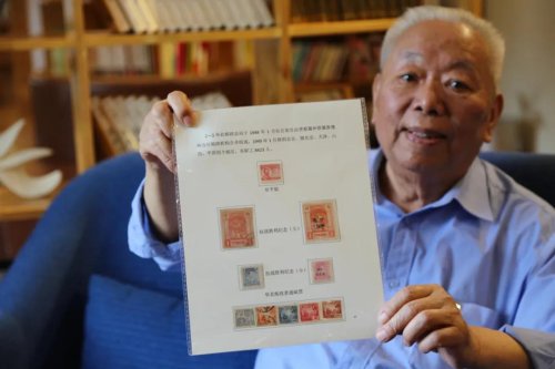 在保定市集郵協(xié)會副會長馬天迪老先生那里,我們看到了這幾枚質地并不華麗,設計并不精美,卻被馬老先生稱為“稀世珍郵”的郵票,據(jù)馬老先生介紹,其珍貴不僅是因為現(xiàn)存數(shù)量極其稀少,更因為它本身所蘊含的意義重大。