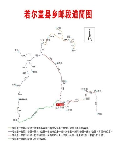 劉旭峰說,長征郵路單程108公里,從若爾蓋縣城出發(fā),沿途途徑班佑13公里-巴西34公里-阿西茸13公里-求吉18公里,最后到達(dá)包座30公里。