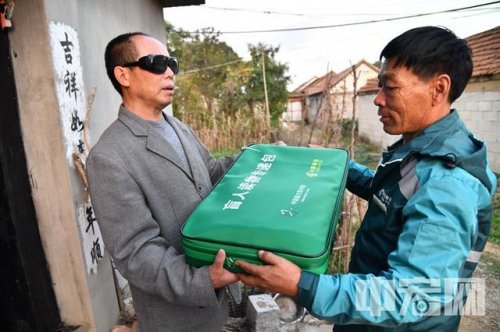 招遠(yuǎn)郵政霞塢支局投遞員李翠祥為黑都坡村盲人送盲人讀物郵件