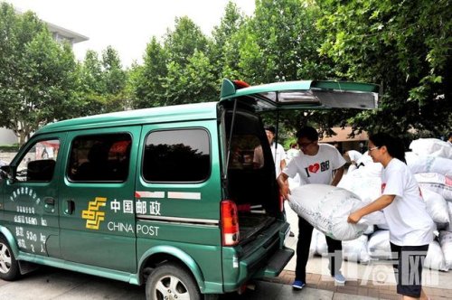 濟(jì)南大學(xué)向郵車上裝學(xué)生包裹 崔鵬森攝