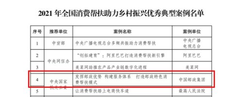 12月2日,在國家發(fā)改委召開的2021年全國消費(fèi)幫扶助力鄉(xiāng)村振興典型案例視頻推介會上,54家單位獲評2021年全國消費(fèi)幫扶助力鄉(xiāng)村振興優(yōu)秀典型案例,中國郵政榮膺其中。