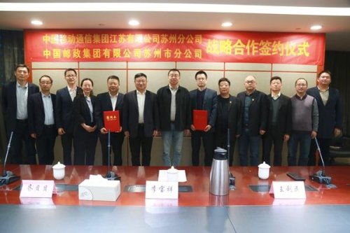 日前,蘇州移動與中國郵政集團有限公司蘇州分公司簽訂戰(zhàn)略合作協(xié)議,蘇州移動總經(jīng)理李寶祥,副總經(jīng)理王利民、齊貝貝,中國郵政集團有限公司蘇州分公司總經(jīng)理陳力烈等領(lǐng)導出席了簽約儀式。
