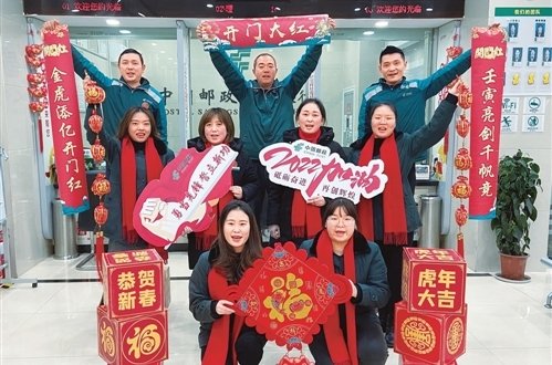 喜氣洋洋辭舊歲,虎虎生威迎新年。新年伊始,中國郵政廣大員工意氣風發、豪情滿懷,全力開展業務旺季開門紅活動,大步邁進推動企業高質量發展的新征程。在推進代理金融業務發展中,重慶市萬州片區郵政分公司定下了一個“小目標”:春節前,全區郵政儲蓄余額規模要突破200億元。作為萬州郵政代理金融的標桿網點,電報路郵政所員工一展“壬寅亮劍千帆競,金虎添億開門紅”的對聯,積極營造營銷氛圍,決心在網點儲蓄余額破億元的基礎上,再創新業績。