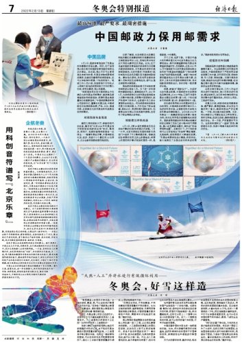 在弘揚(yáng)優(yōu)秀傳統(tǒng)文化和奧林匹克文化的同時(shí),中國郵政在郵票印制中引入先進(jìn)的科技手段,以嶄新的形式呈現(xiàn)北京冬奧會的精彩魅力。以《北京2022年冬奧會——競賽場館》紀(jì)念郵票小型張為例,首次應(yīng)用菲涅爾透鏡微納光刻技術(shù)。國家速滑館建設(shè)所用的剩余玻璃材料經(jīng)過特殊工藝加工成50微米的可用顆粒,摻入紅色雕刻油墨中,制作成“冰絲帶特種油墨”。在紫光燈下,方寸間的場館可以立即呈現(xiàn)出“冰絲帶”霓虹璀璨、光影流轉(zhuǎn),場館周圍燈火輝煌的夜景。“冬奧會郵票郵品設(shè)計(jì)精美,很受歡迎,極大地滿足了各國運(yùn)動員和來賓的需求。”國家郵政局局長馬軍勝說。
