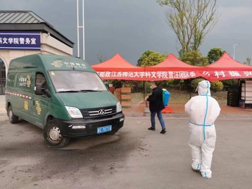 4月18日,415.5公斤黃瓜、162.5公斤西紅柿經(jīng)過(guò)消殺后交付江蘇師范大學(xué)科文學(xué)院,收到新鮮蔬菜的師生為賈汪郵政快速、高效、優(yōu)質(zhì)的服務(wù)連連點(diǎn)贊。此后,新鮮蔬果將會(huì)源源不斷供應(yīng)。