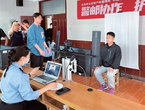 圖為近日在蘭州西北中學,郵政工作人員和民警正忙碌著為考生們辦證。