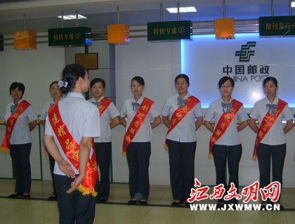 每天清晨、當(dāng)您迎著朝霞、走過吉安市郵政局鷺洲營(yíng)業(yè)廳門口的時(shí)候,可以看到十幾名營(yíng)業(yè)員排著整齊的隊(duì)伍,莊嚴(yán)宣誓。這,只是吉安市郵政局“建精品窗口、創(chuàng)優(yōu)質(zhì)服務(wù)”的一個(gè)小縮影。