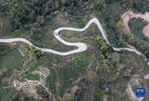 10月28日,吳義陽駕車為村民投遞郵件(無人機(jī)照片)。